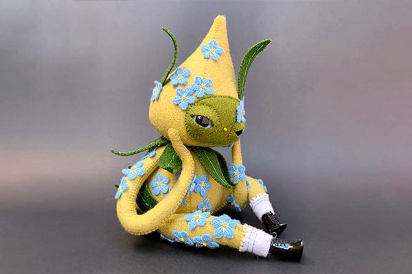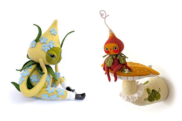 - Hannakin - 'Amphibious Clover' - wool felt, thread, wire, Sculpey and mixed media on raw pine wood base