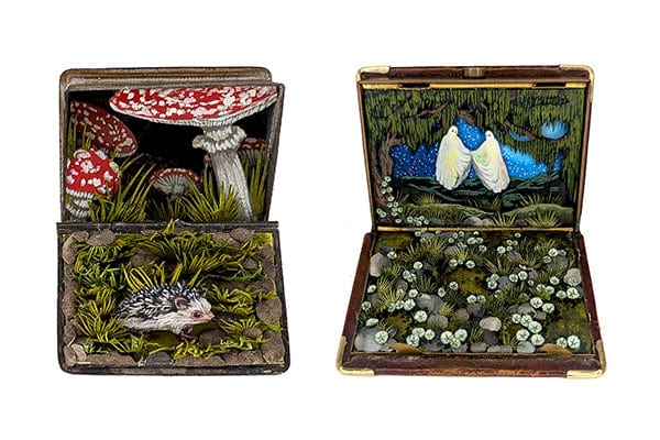 - Kim Slate - 'Just Between Us' - clay, gouache, acrylic, wire, epoxy and walnut board