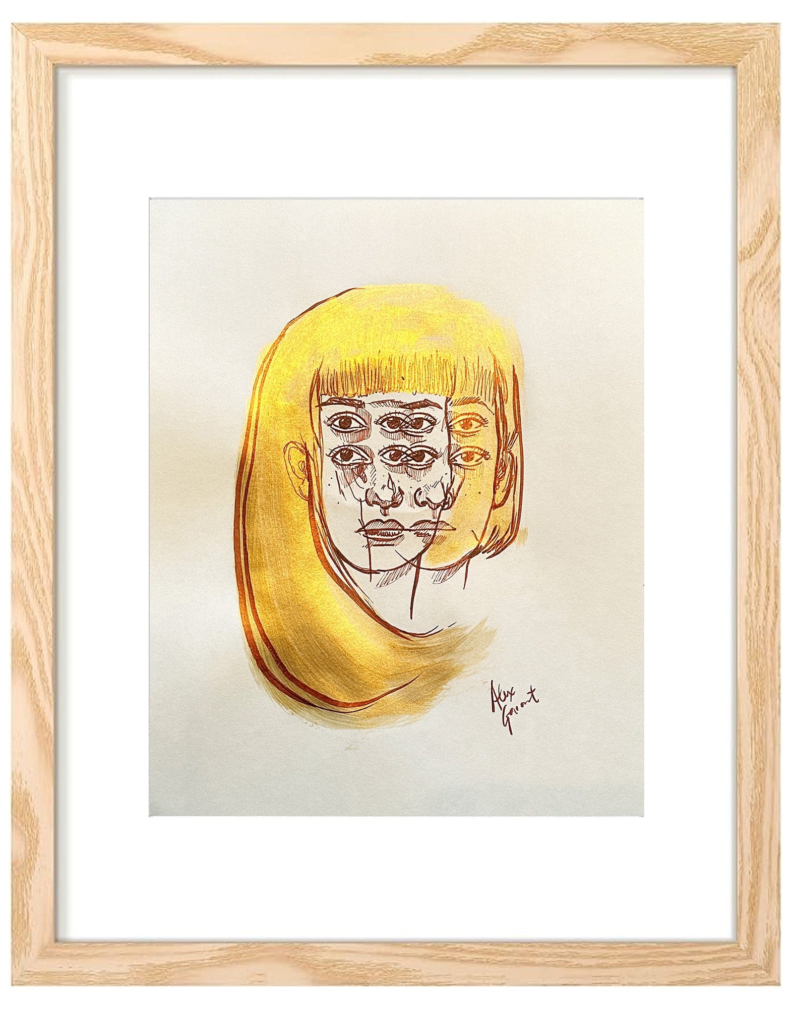 Alex Garant - 'Sketch 2' - gold acrylic, ink and Macron pen on bamboo paper
