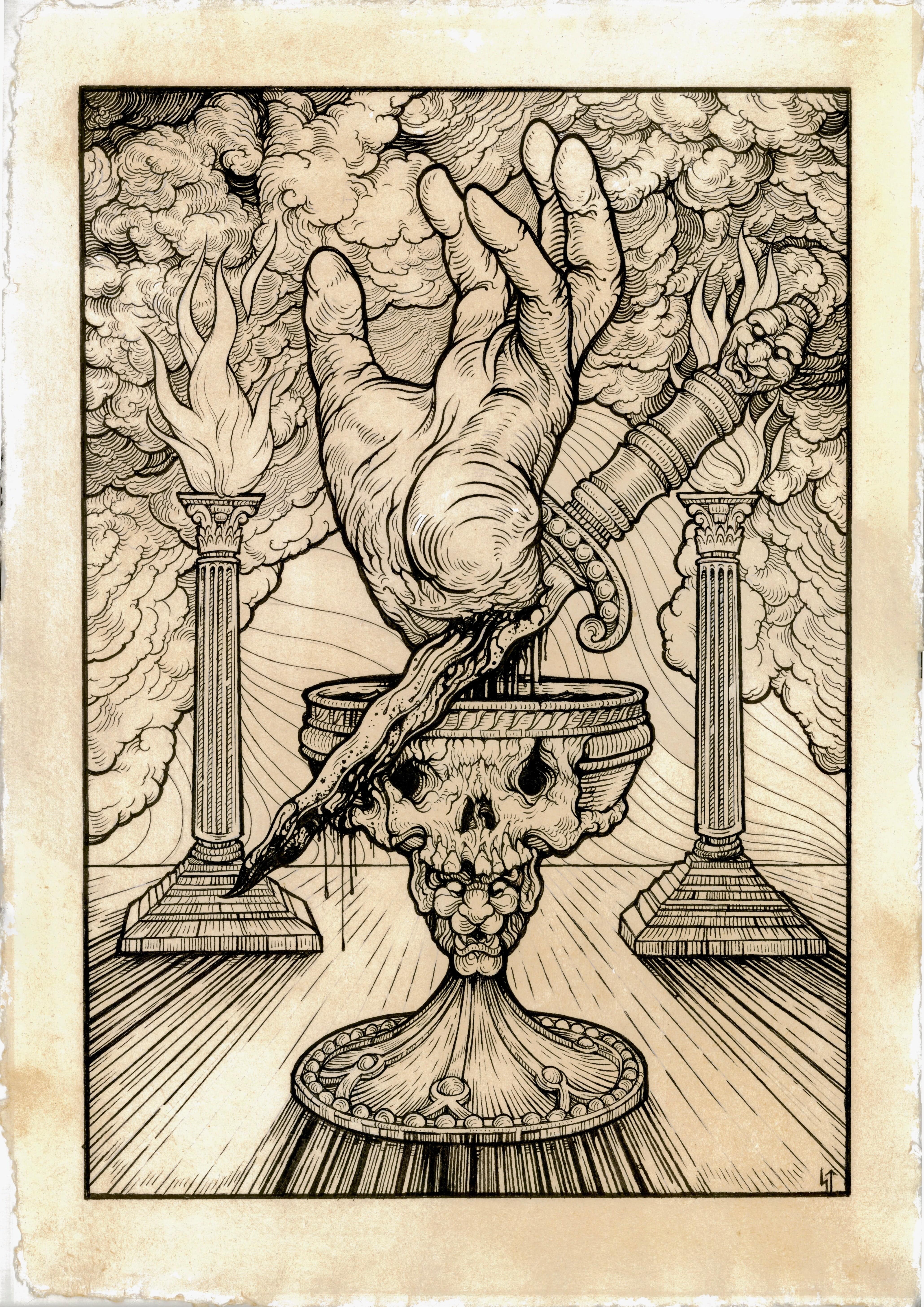 Simon Turner - 'Eucharist' - Micron ink pen and tea wash on cotton rag paper