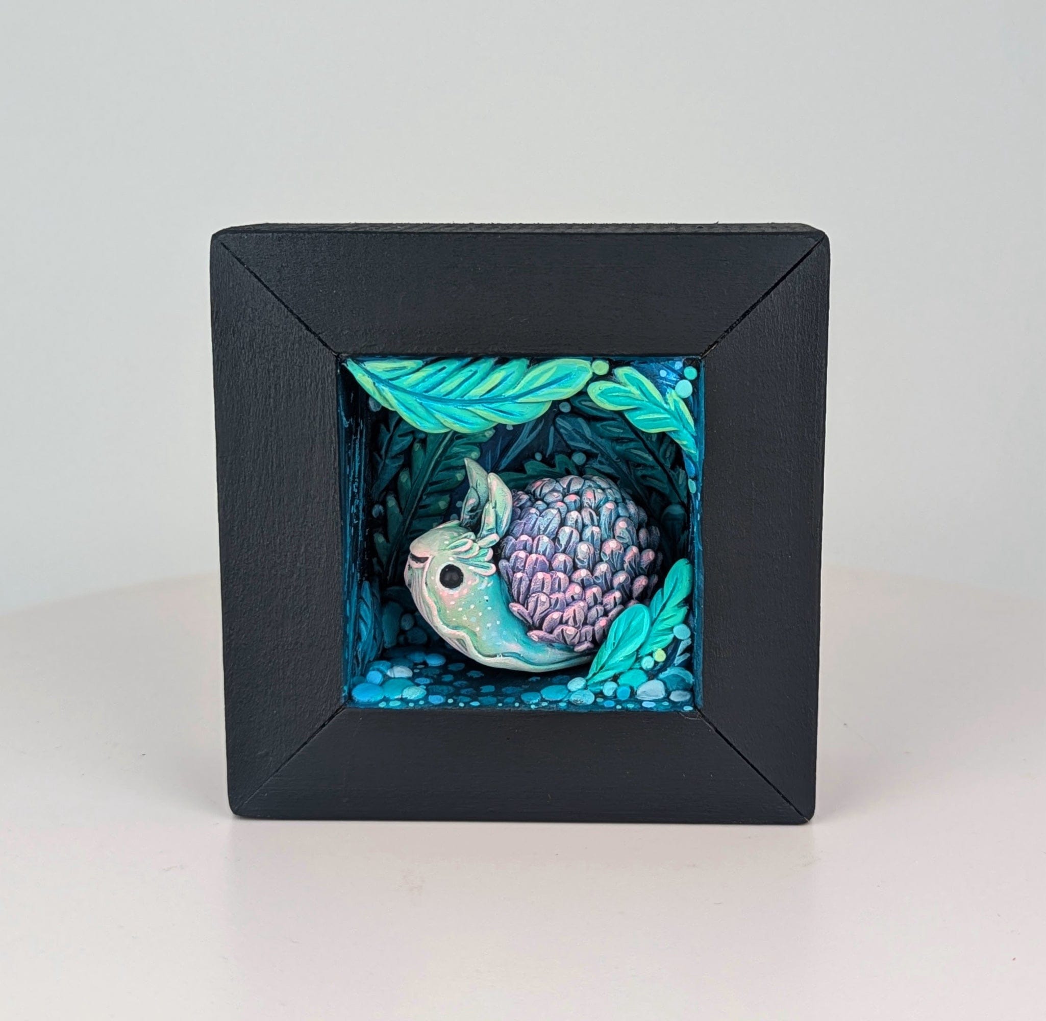 Polymer clay and wood panel sculpture by Emma SanCartier (Odd Fauna) (2025).