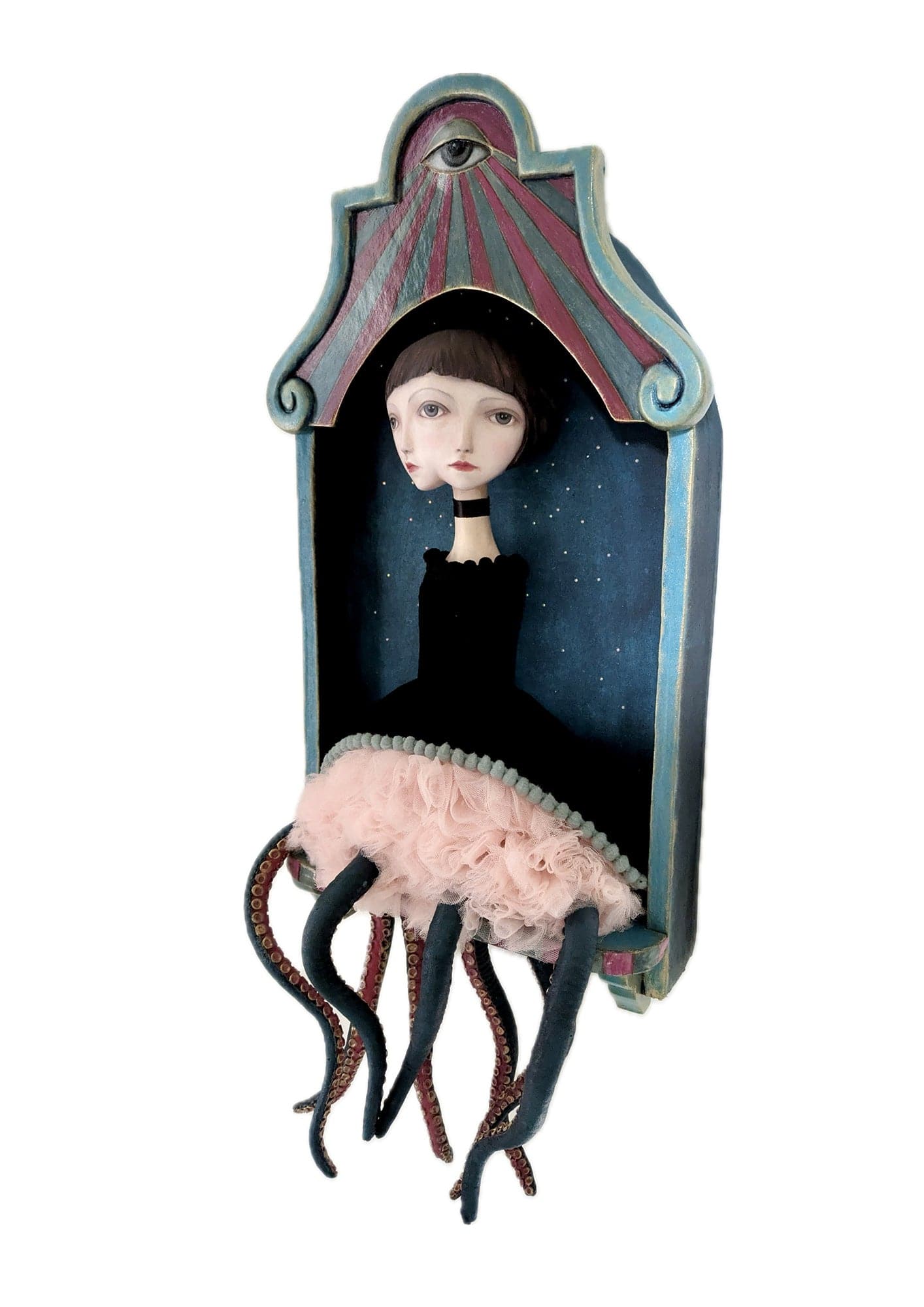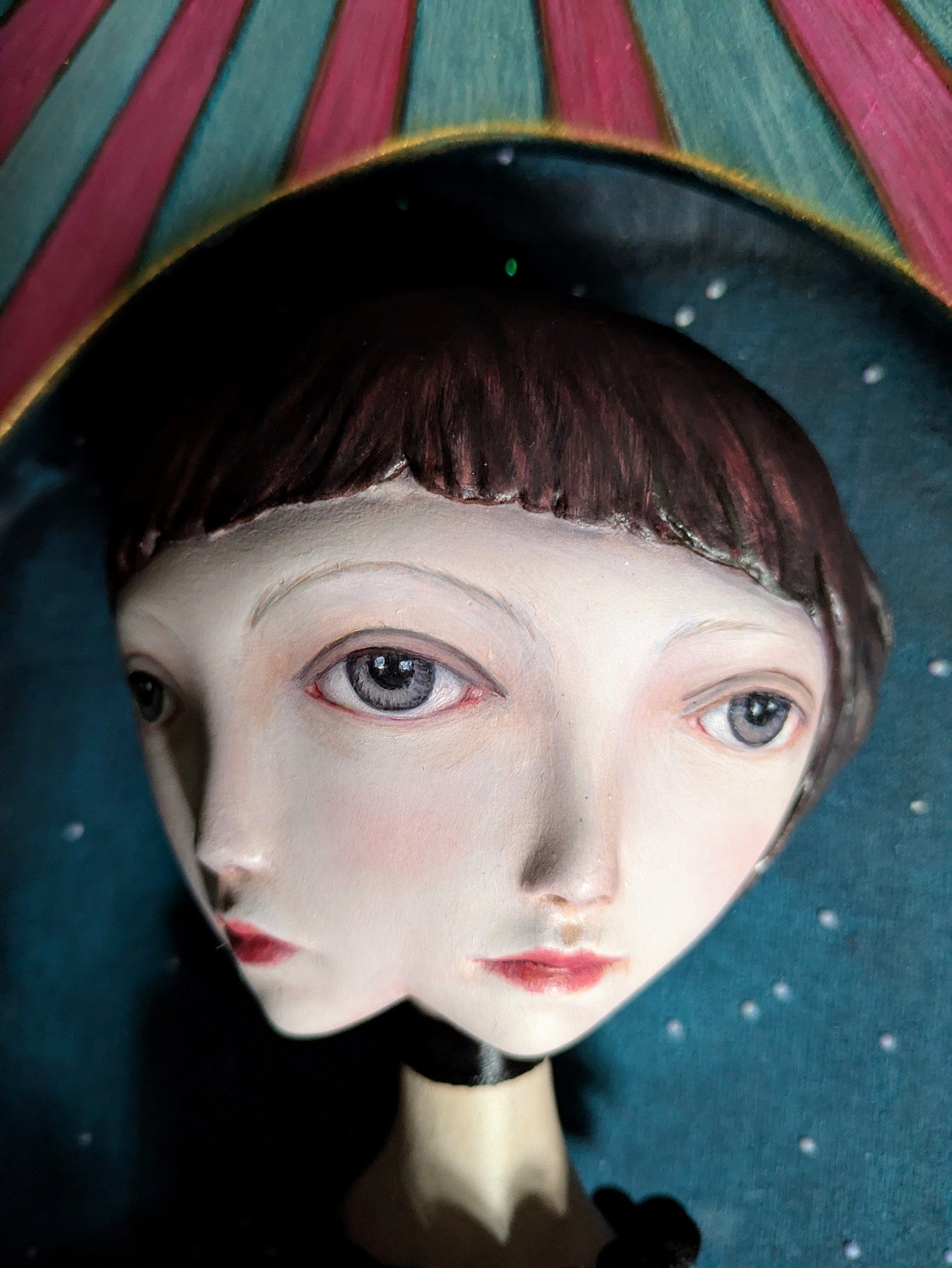 Zoe Thomas - 'Amélie Amélie, The Mystic Twin' - paper clay, epoxy clay, wire, cardboard, wood, fabric, acrylic and oil paint