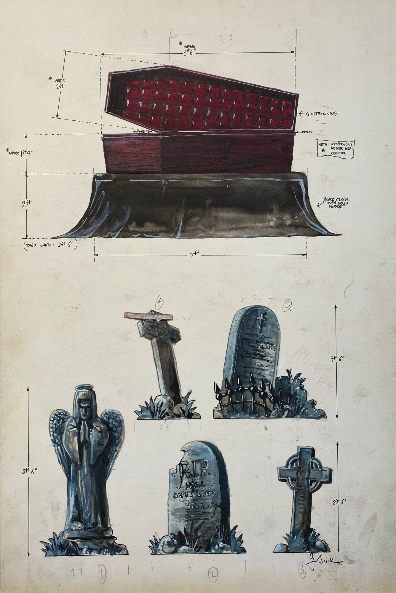 Graeme Base - 'Coffin and Gravestones (Set Design)' - ink on board