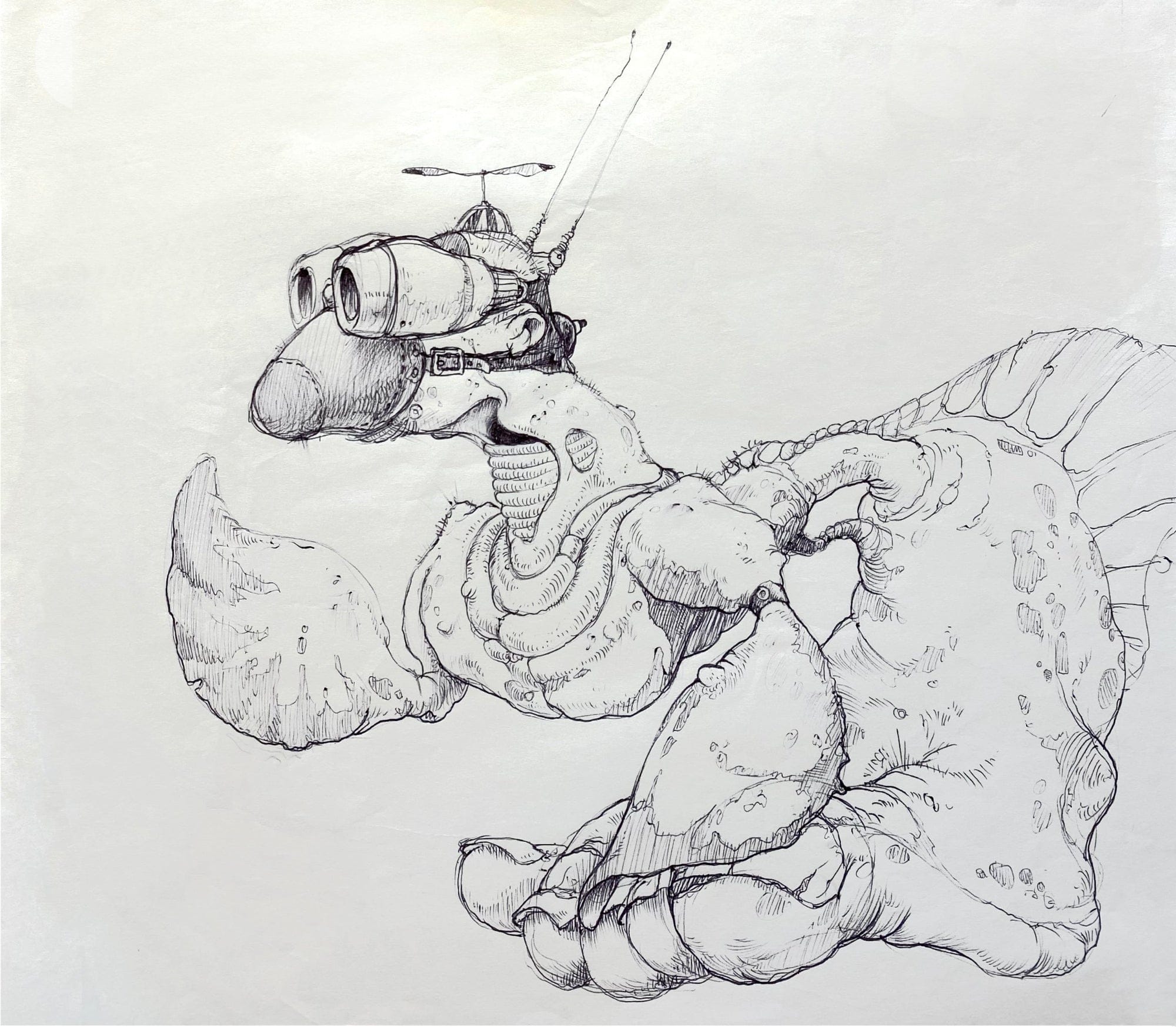 Graeme Base - 'Mog Helix on Holidays' - ink on paper