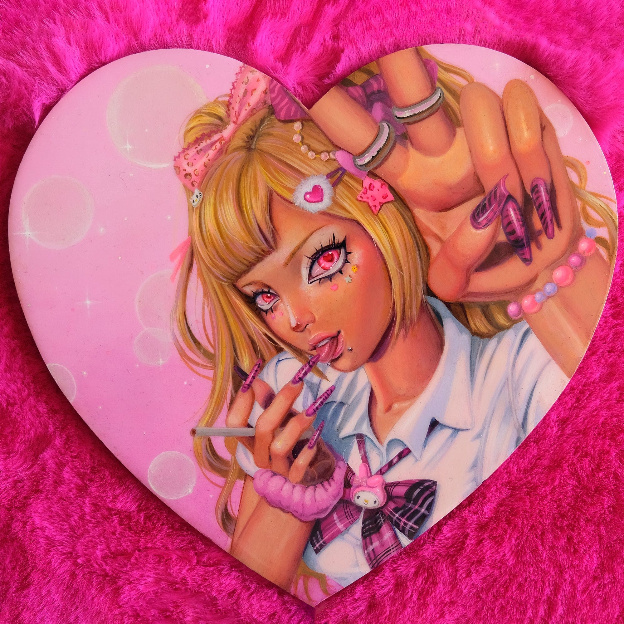 Izzy Faith V - 'Gyaru: Get Wild & Be Sexy' - acrylic and iridescent pigment on custom-cut board