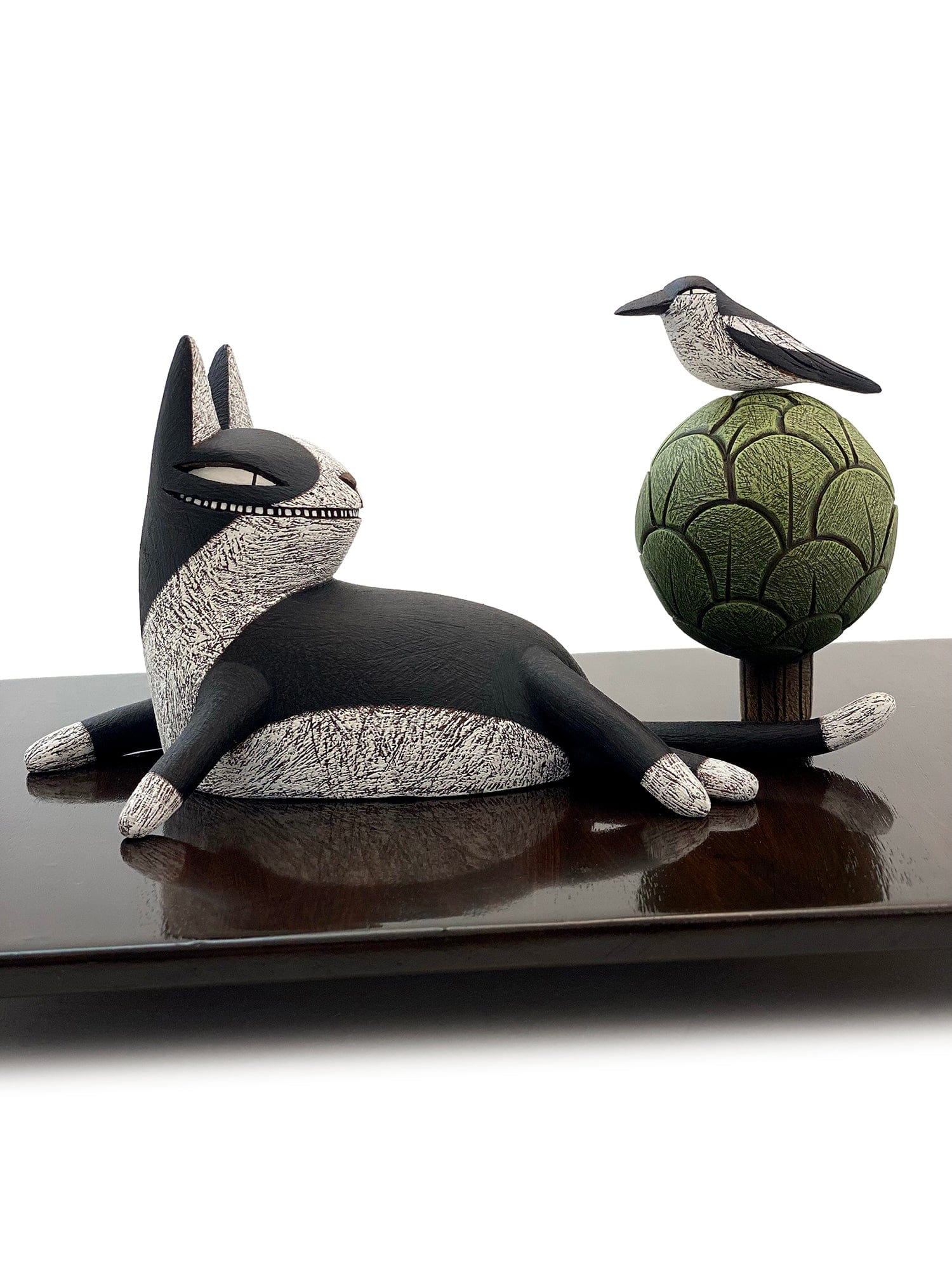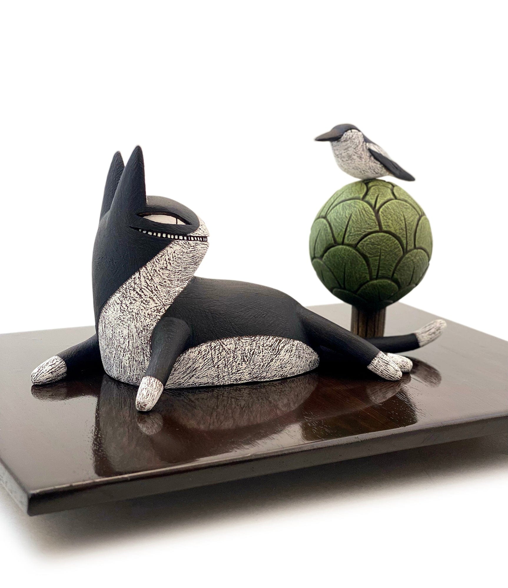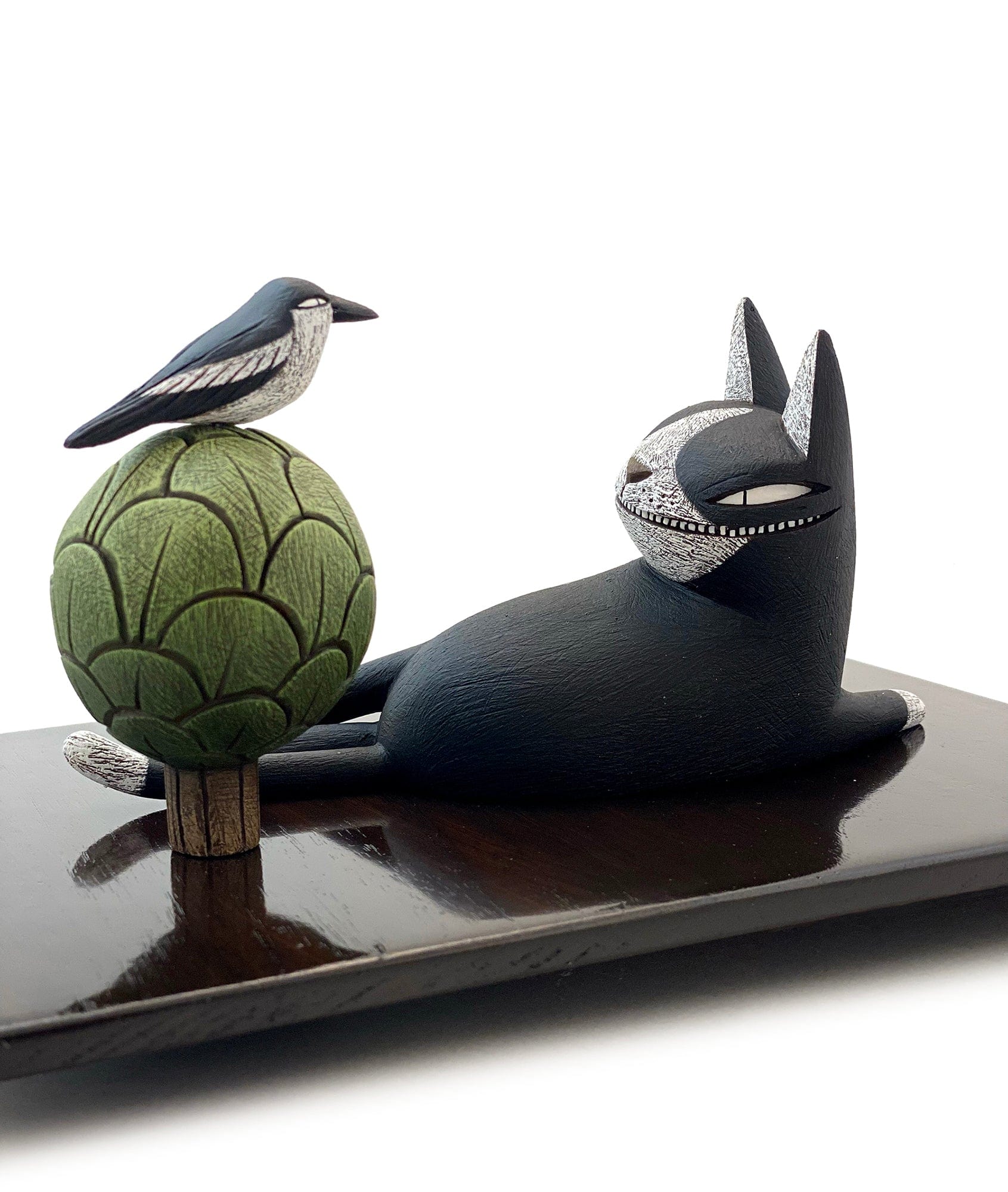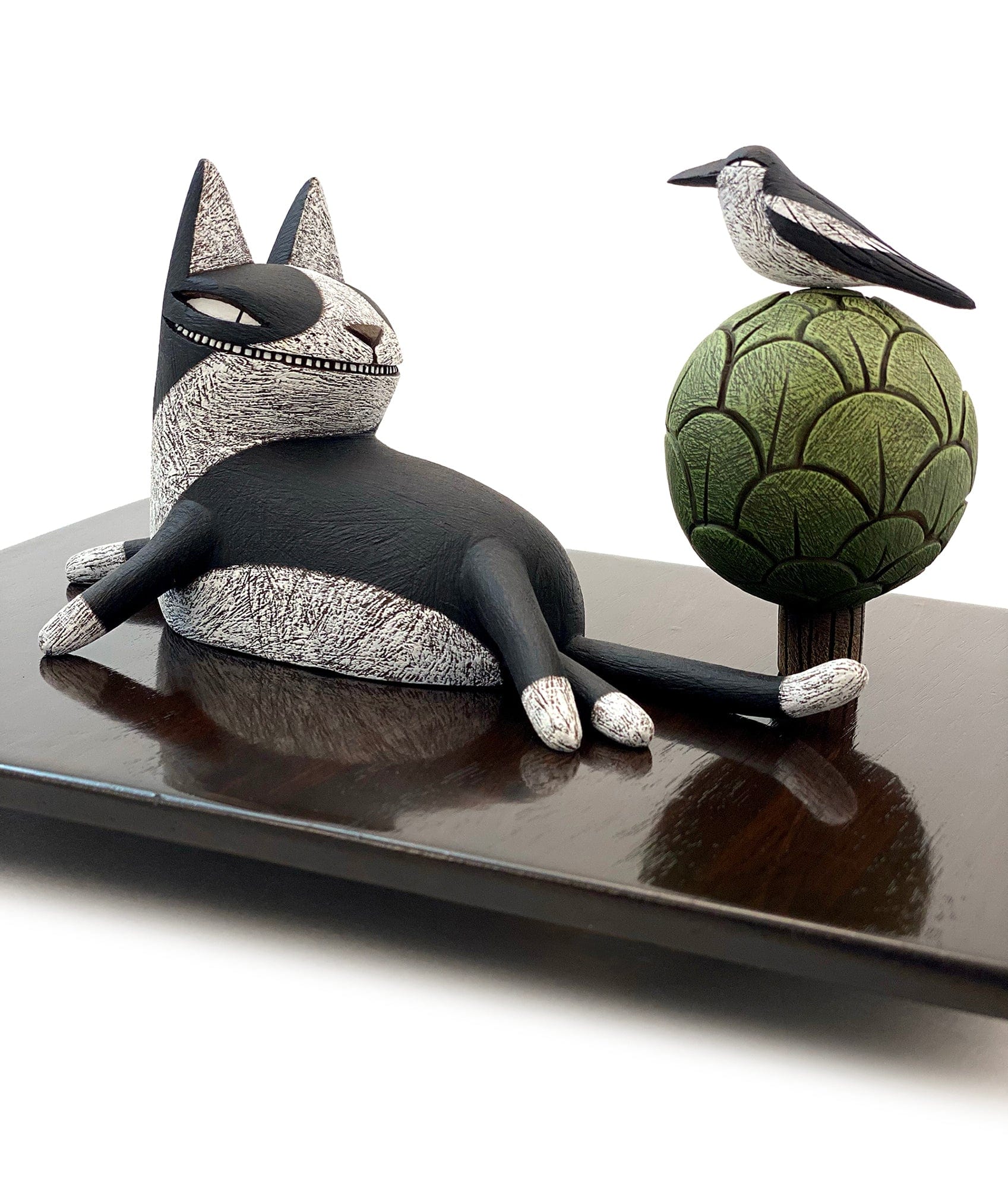 - Kim Slate - 'Just Between Us' - clay, gouache, acrylic, wire, epoxy and walnut board