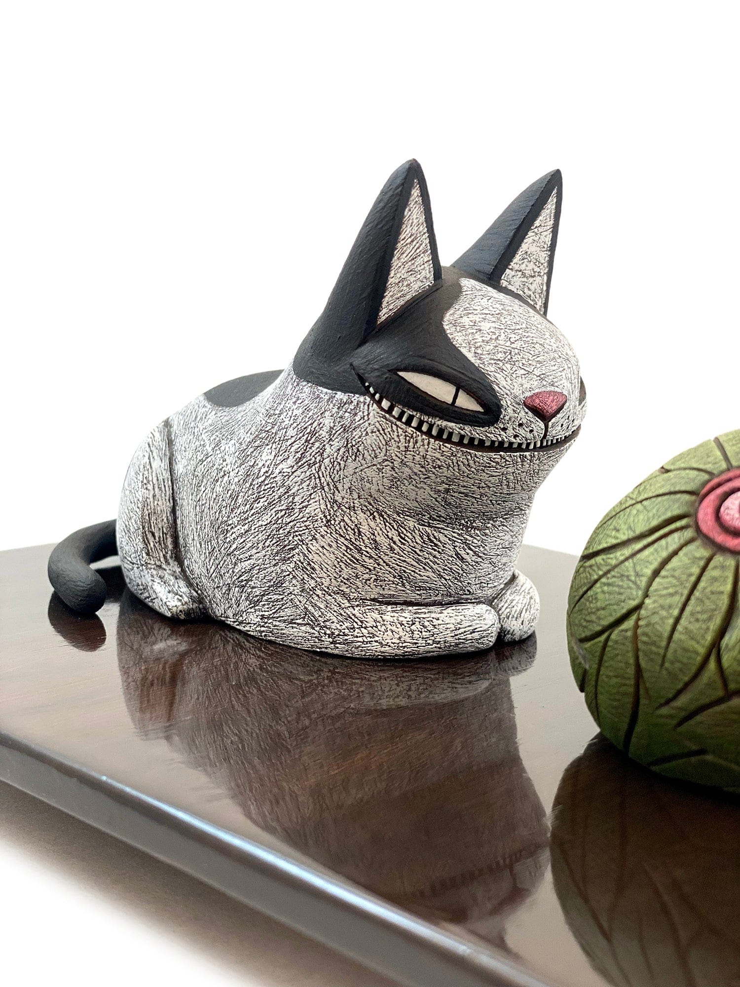 Clay, gouache, acrylic, wire, epoxy and walnut board by Kim Slate (2025).
