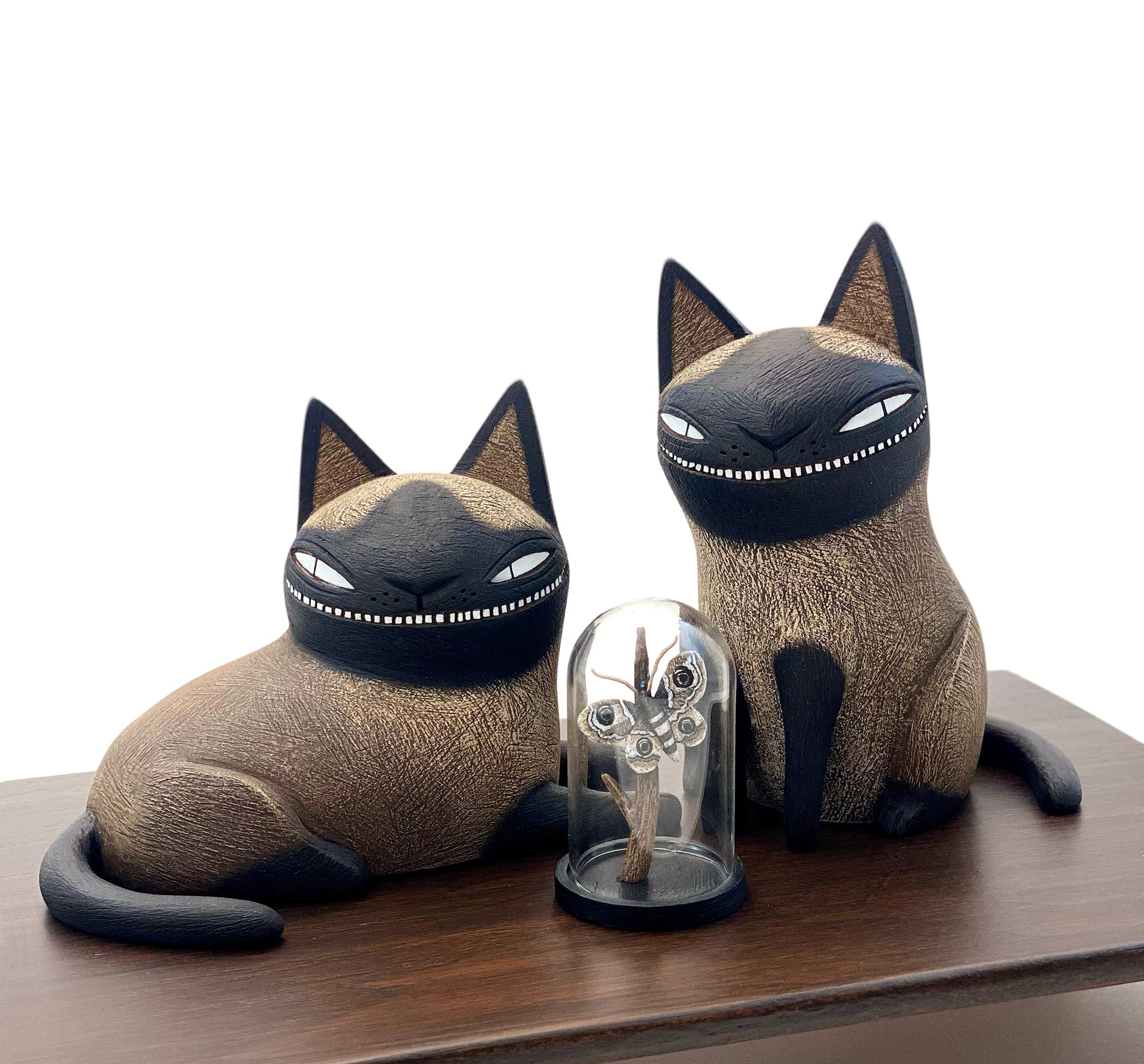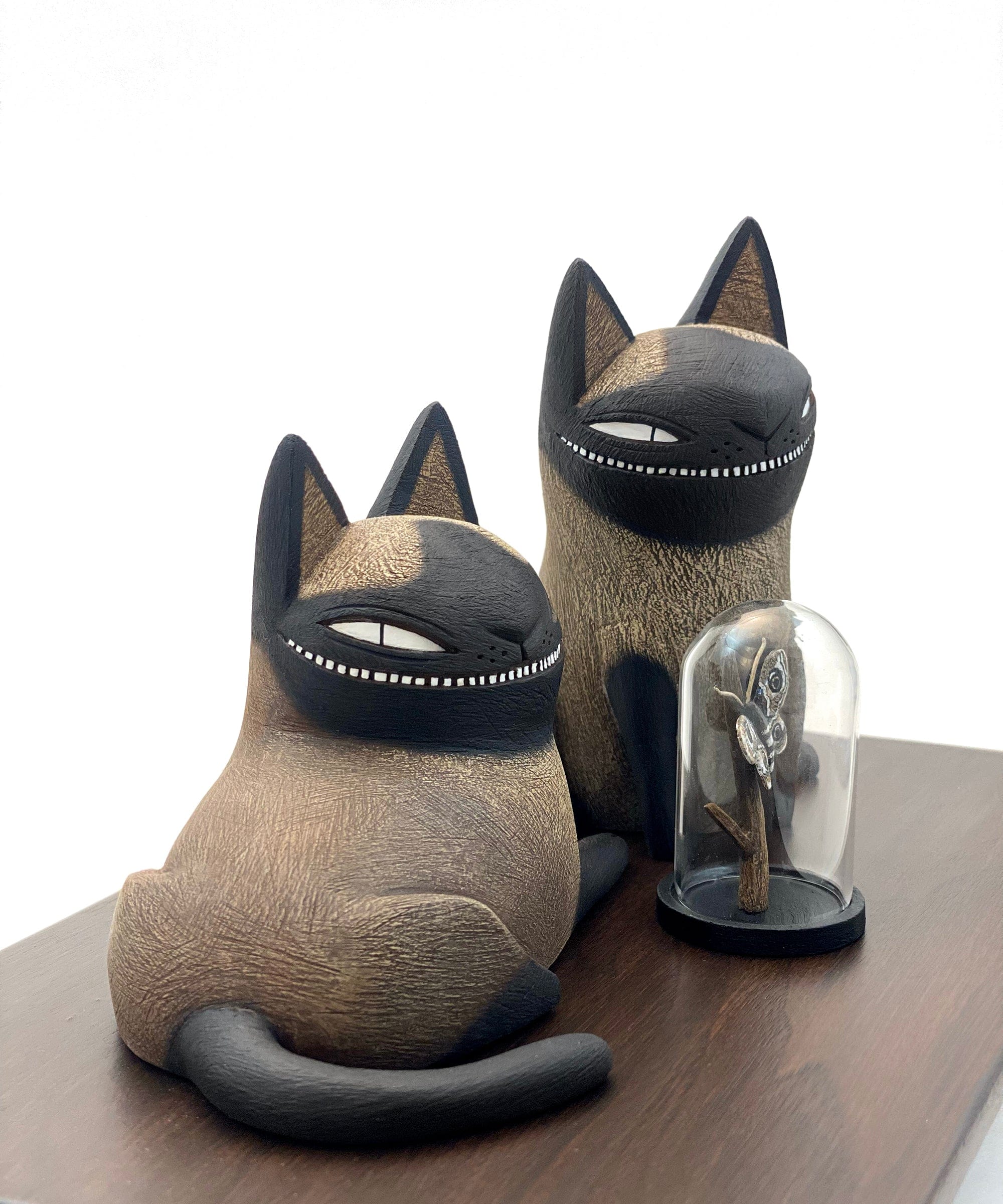 Kim Slate - 'Collectors' - clay, wire, gouache, acrylic, glass, epoxy & wood