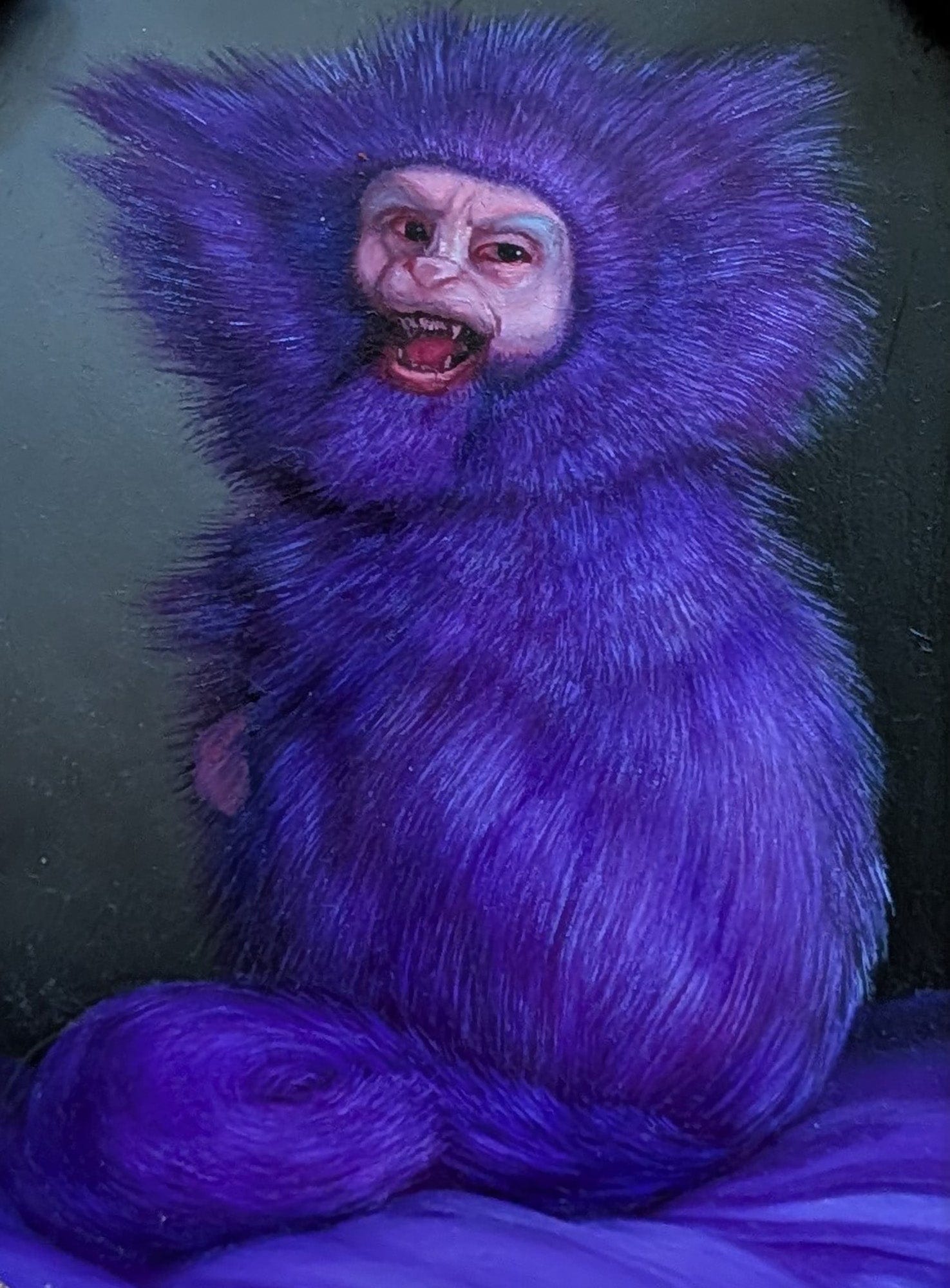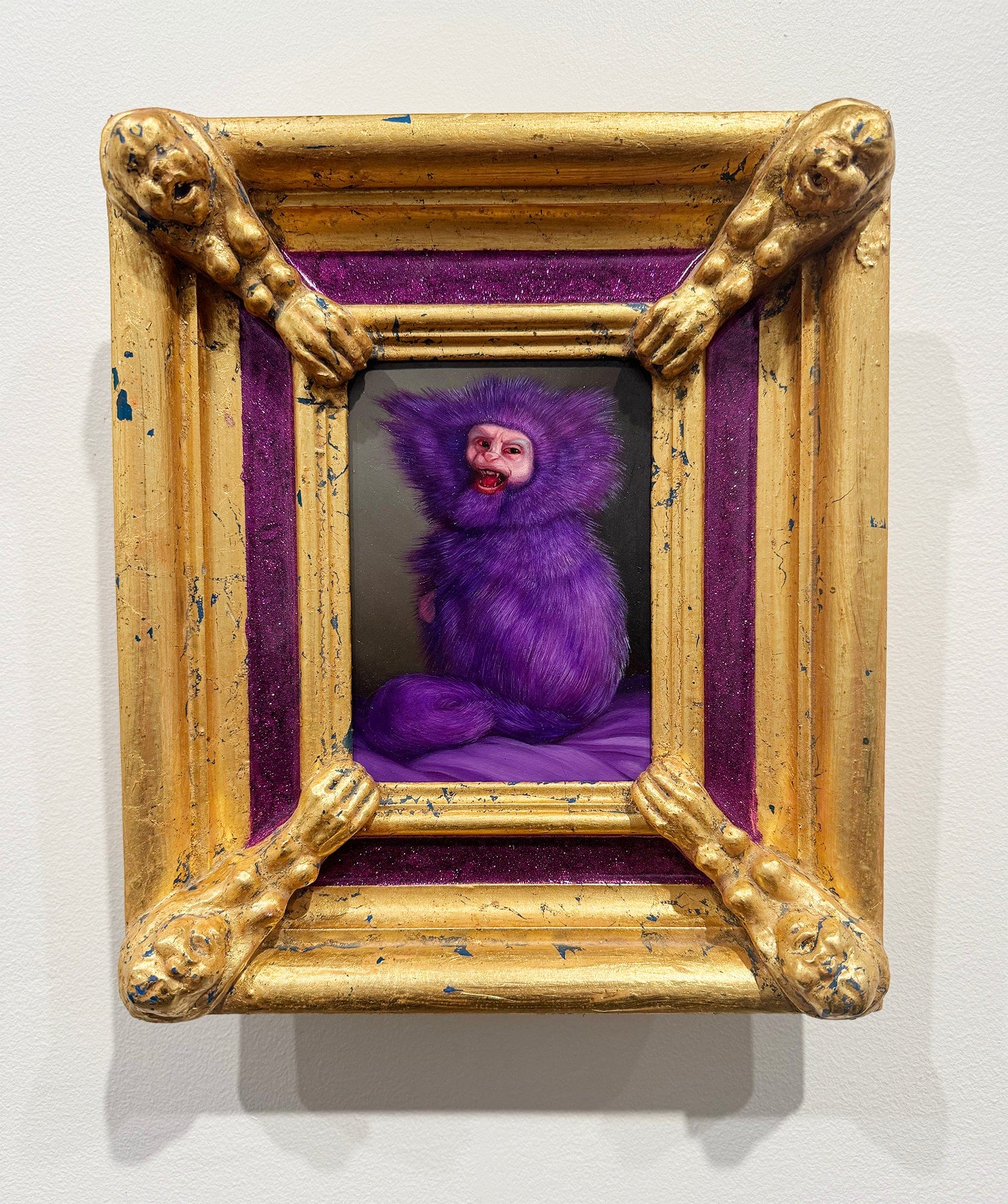 Laurie Hogin - 'Allegory of Longing and Hope (Violet Love Monkey)' - oil on panel with artist-made frame