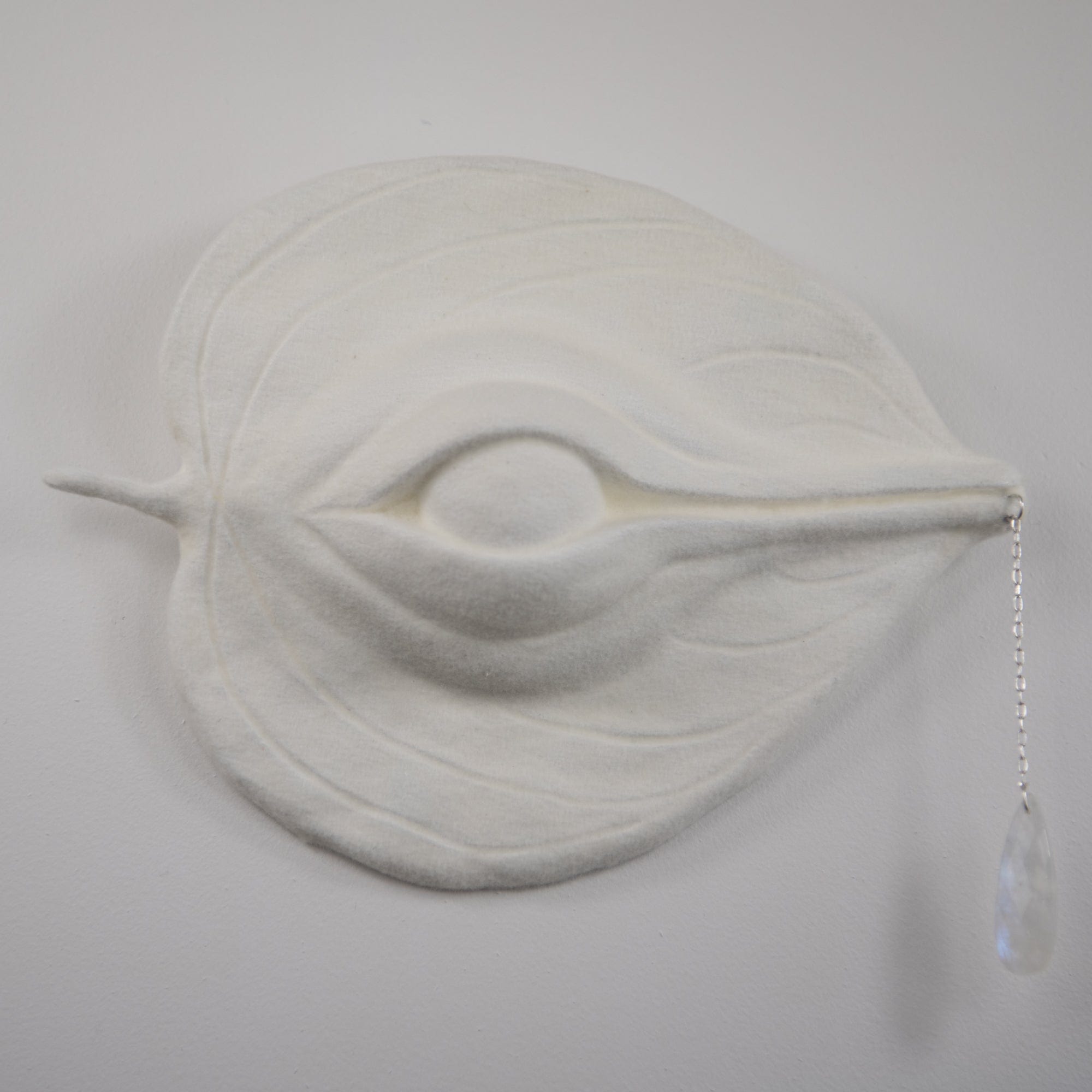 - Hannakin - 'Radish Dicapitae' - wool felt, thread, magnet, glass beads and mixed media on raw pine wood base