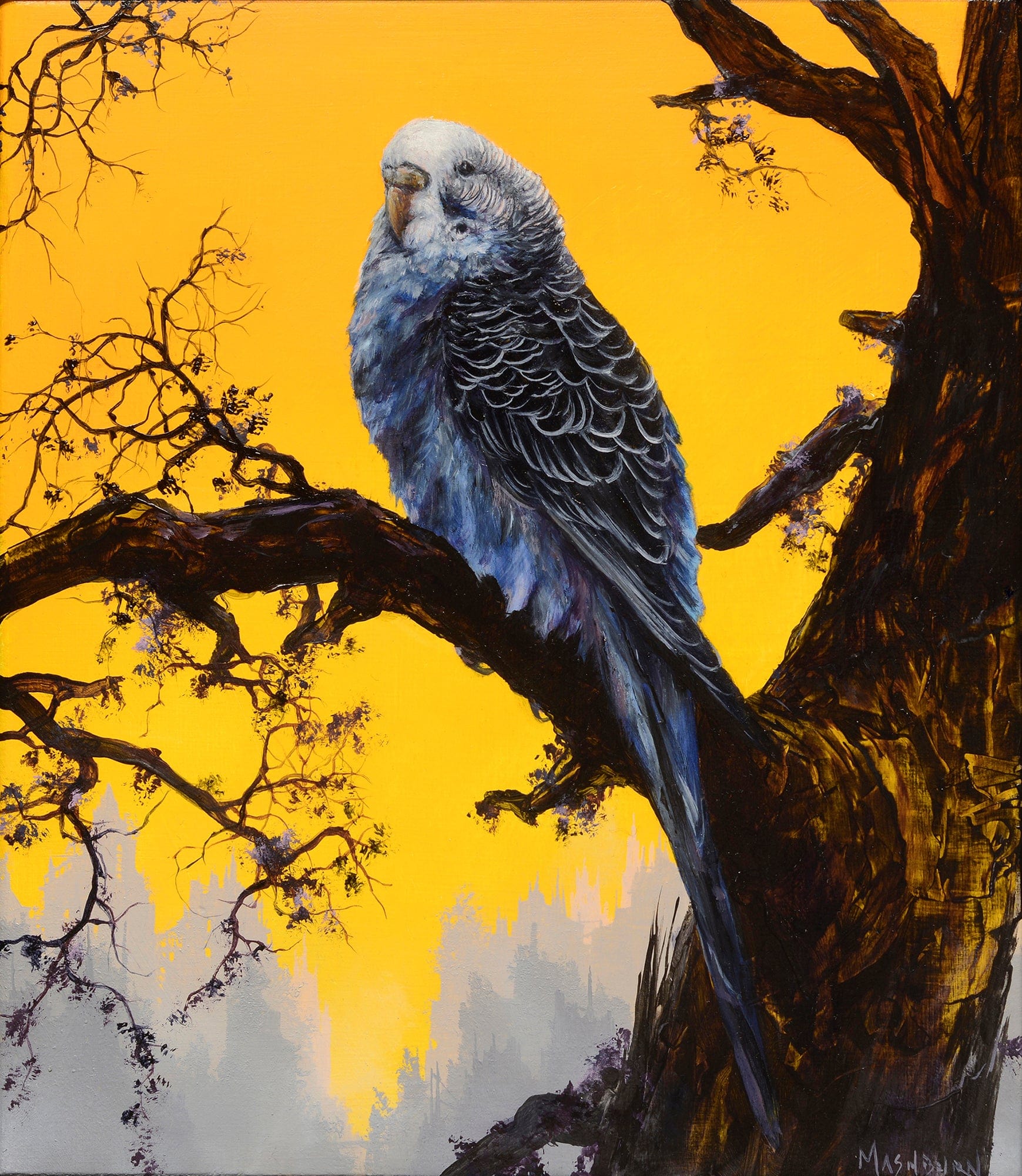 Brian Mashburn - 'Blue Budgie' - oil on basswood