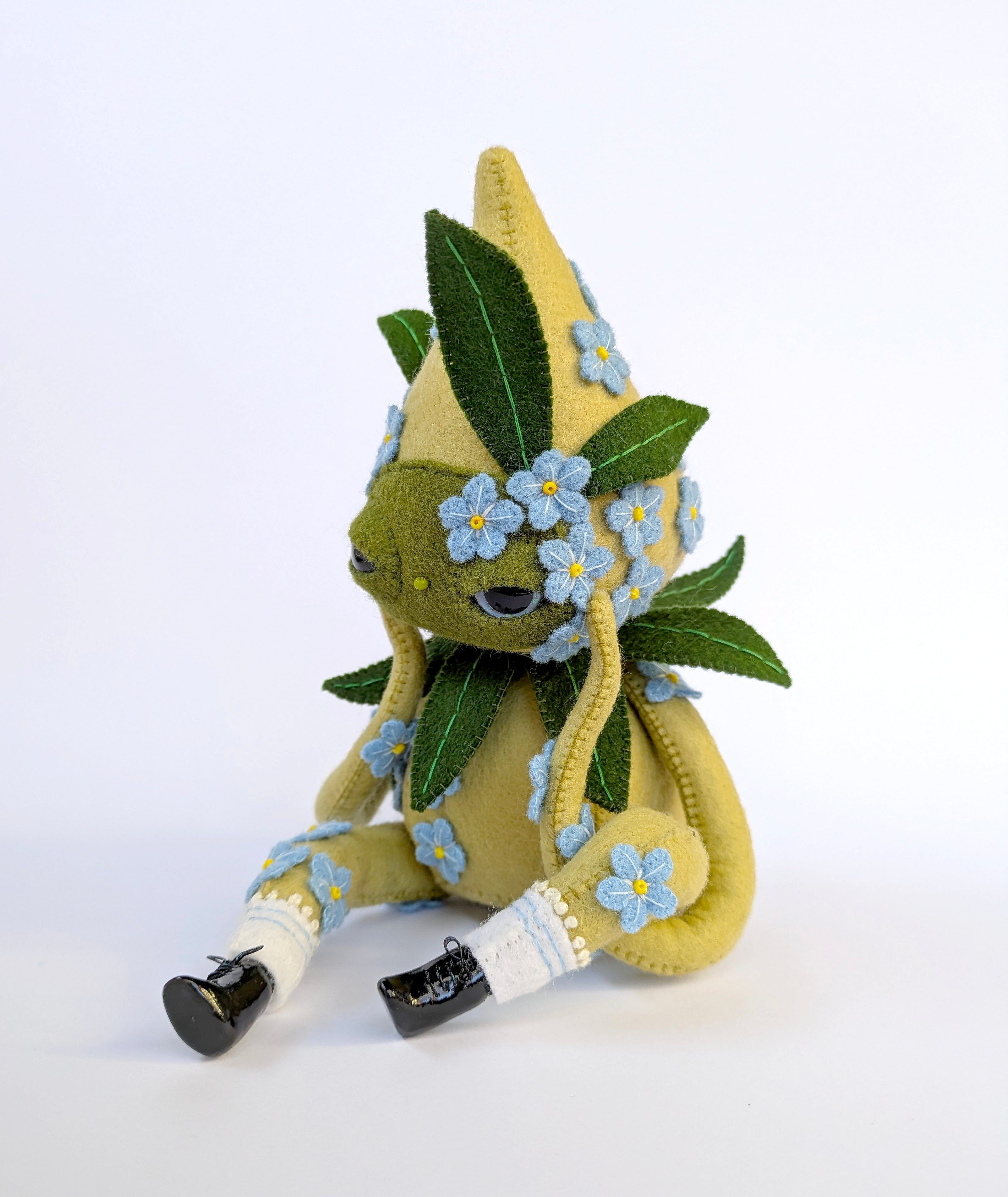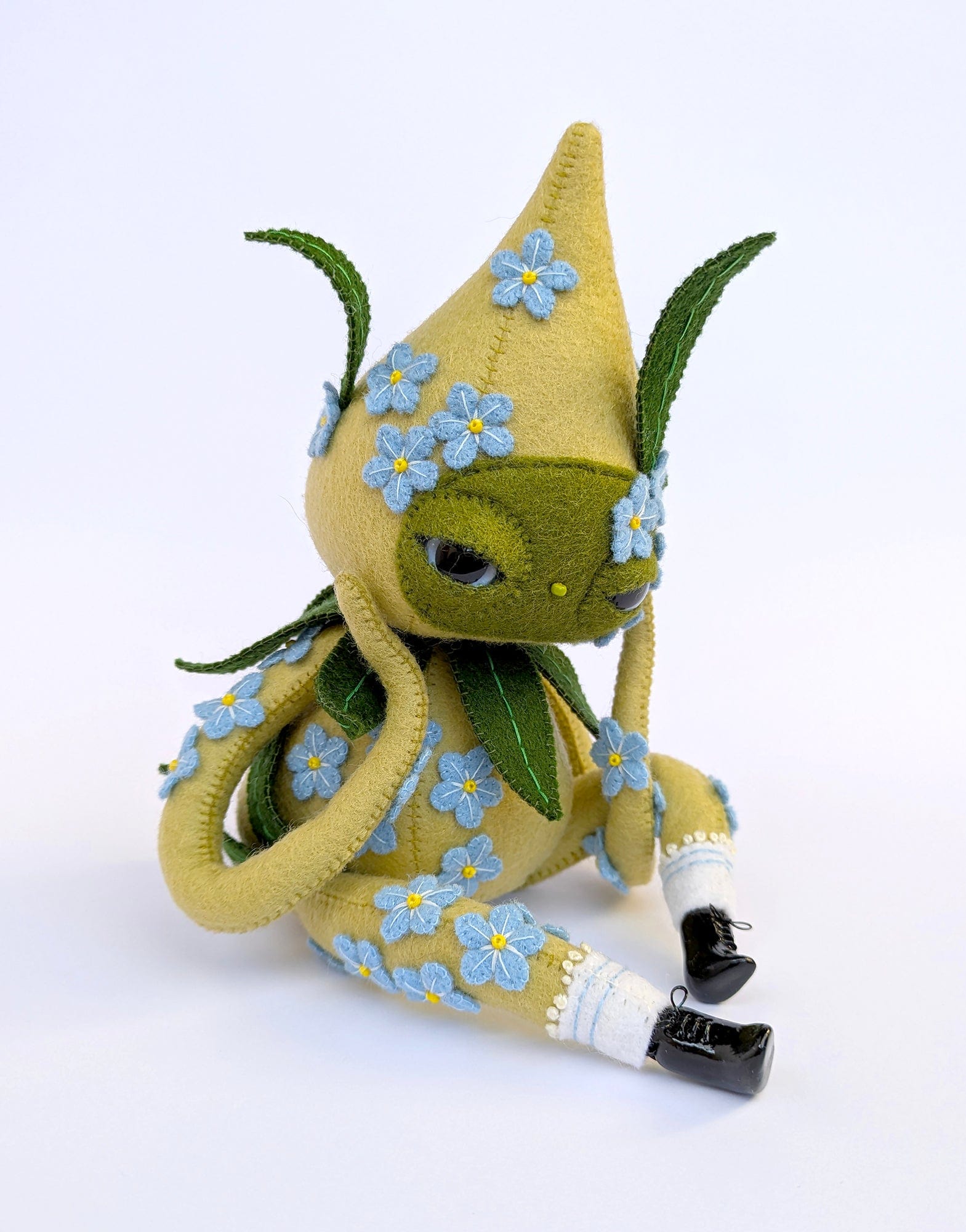 - Hannakin - 'Amphibious Clover' - wool felt, thread, wire, Sculpey and mixed media on raw pine wood base
