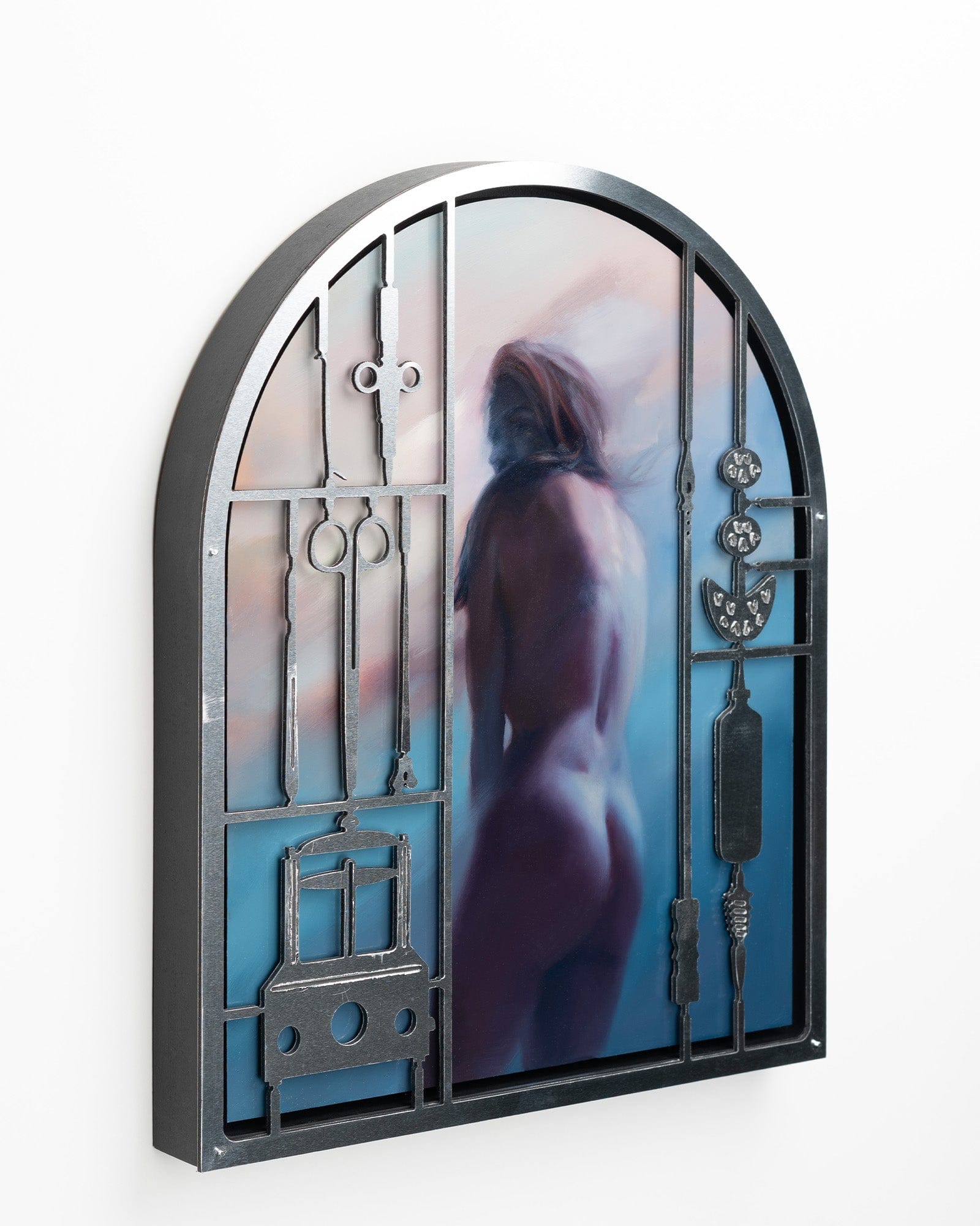 Liz Gridley - 'Do You Fear Decomposition?' - oil on aluminium with metal lace frame