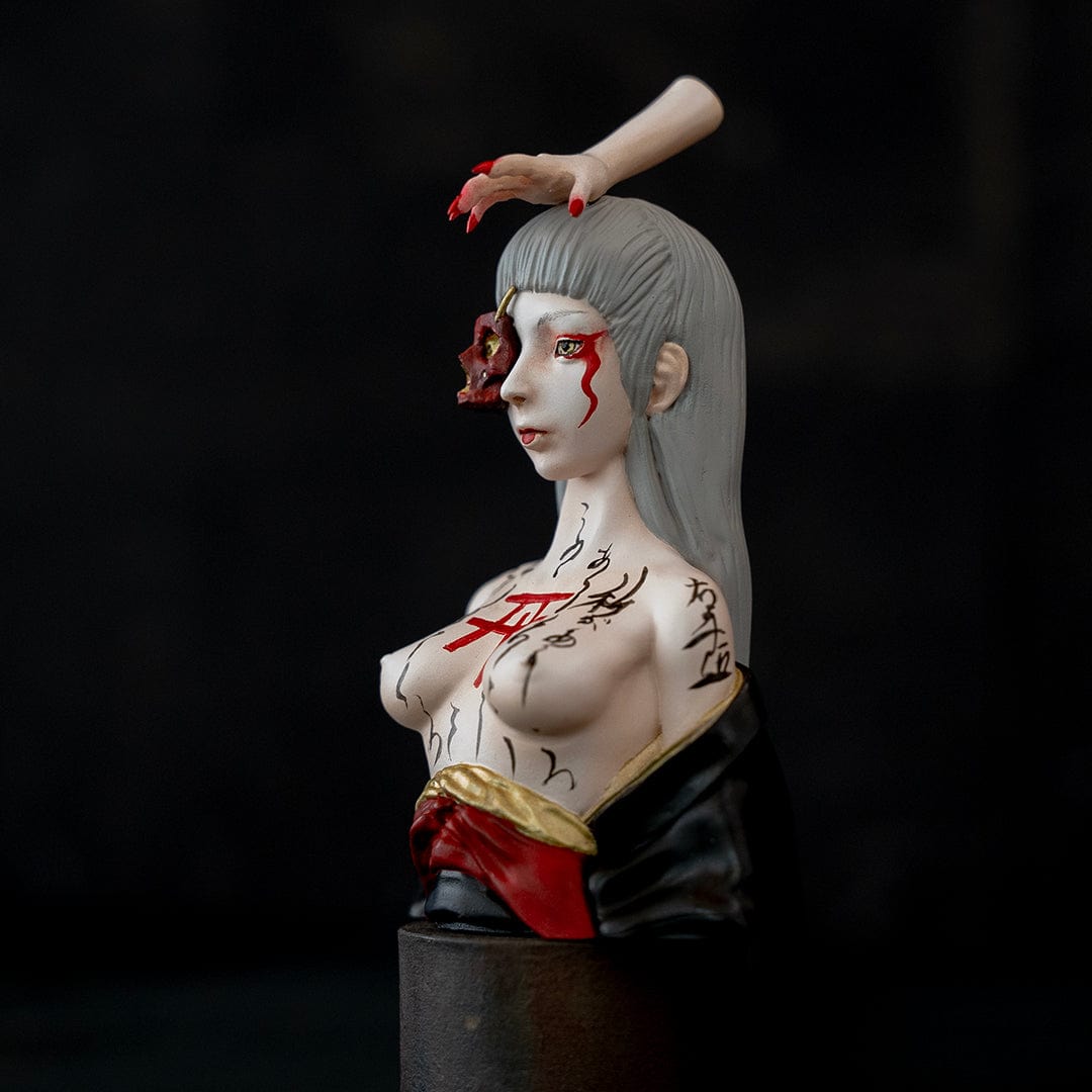 - Tokyo Jesus - 'Collector' - resin, acrylic, lacquer and enamel paint, vintage kimono, old buttons, beads, fabric, epoxy putty, paper, synthetic hair and bandage